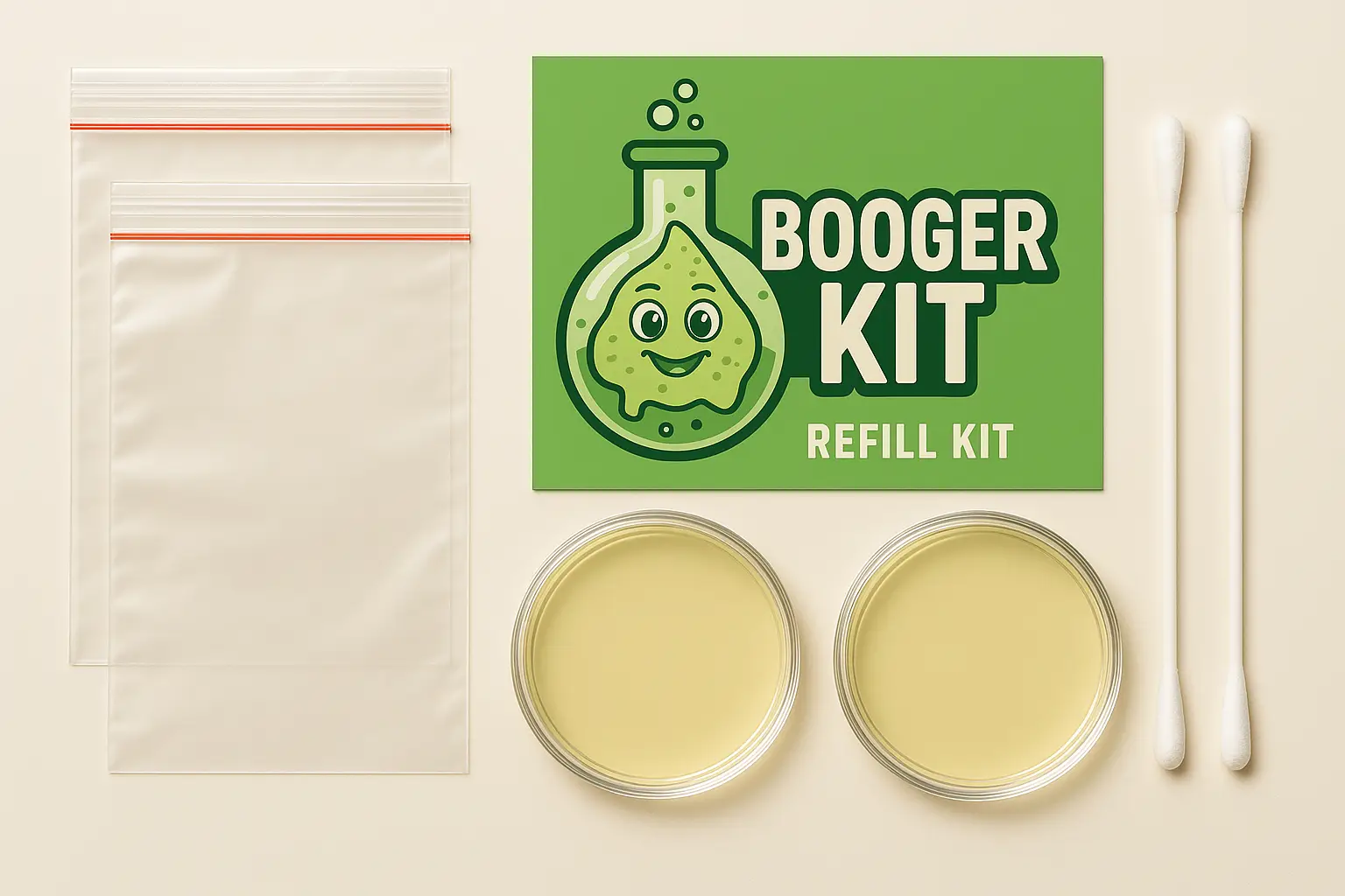 Keep the gross science going! The Booger Kit Upgrade Pack includes everything you need to run more experiments —whether you’re swabbing a new subject (hello, dad’s nose?) or testing other germy surfaces around the house.